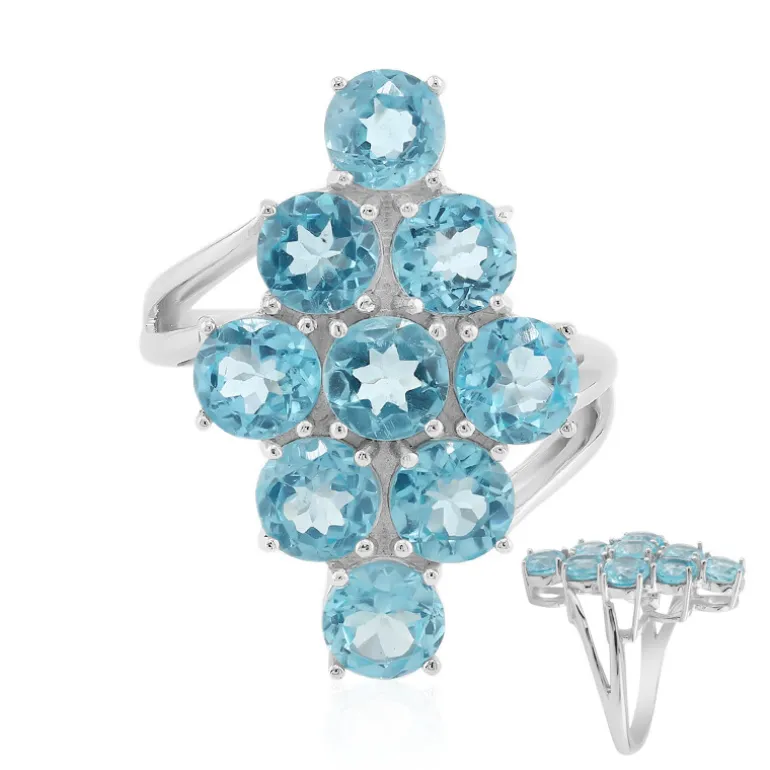 Schmücken Sie Ihre Hand mit diesem bezaubernden Ring aus blauem Apatit, der aus Sterlingsilber gefertigt ist. Mit seinen neun Steinen aus Madagaskar im Rundschliff und einem Gewicht von 3,825 Karat verleiht er Ihnen einen luxuriösen Touch. Er eignet sich perfekt, um jedem Outfit einen Farbtupfer zu verleihen, ob leger oder formell. Das einzigartige Design macht dieses Schmuckstück zu einer ausgezeichneten Wahl für besondere Anlässe oder zur Aufwertung Ihres Alltagsstils.