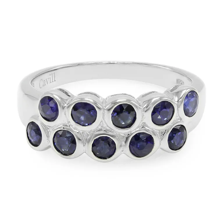 Genießen Sie die azurblaue Eleganz dieses wunderschön gearbeiteten Rings mit 10 blauen burmesischen Saphiren im Rundschliff von insgesamt 1,05 Karat, die geschmackvoll in glänzendes 925er Sterlingsilber mit einer Platinoberfläche gefasst sind. Der satte Farbton der Saphire, die aus den sagenumwobenen Minen von Myanmar stammen, bietet Raffinesse für formelle Anlässe und ist gleichzeitig vielseitig für den Alltagsstil. Ergänzen Sie Ihre Kollektion mit diesem exquisiten Stück und setzen Sie einen bezaubernden Farbakzent.