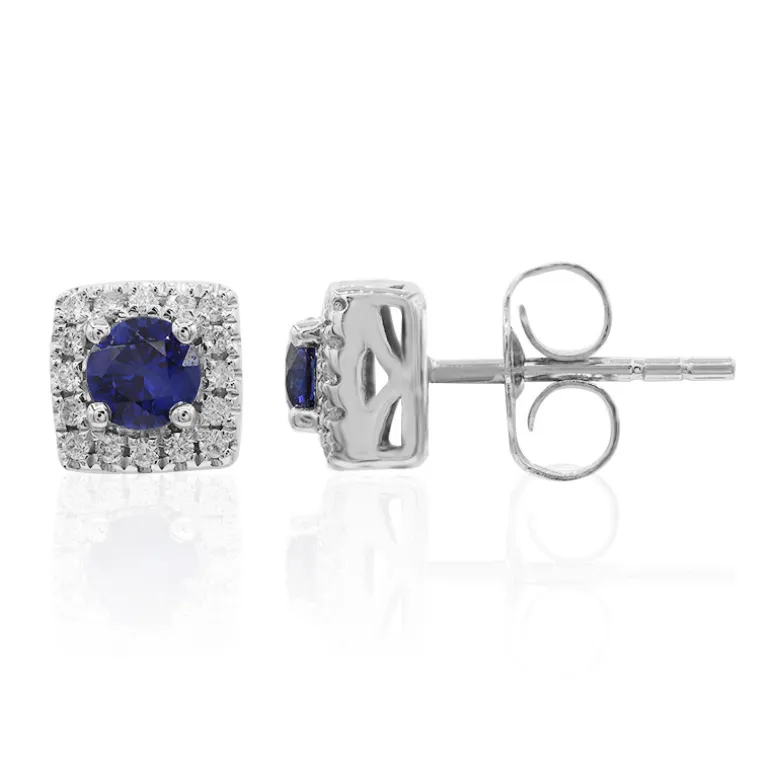 Erleben Sie zeitlose Eleganz mit diesen atemberaubenden Ohrsteckern mit blauem Ceylon-Saphir, gefasst in poliertem 10 Karat Weißgold. Jeder Ohrring ist mit einem bezaubernden Saphir im Rundschliff versehen, der von einem Halo aus glitzernden Diamanten umgeben ist und einen klassischen und raffinierten Look kreiert. Diese Ohrringe eignen sich sowohl für den Alltag als auch für besondere Anlässe. Sie verleihen jedem Outfit einen Hauch von Luxus und sind ein exquisites Geschenk für eine besondere Person oder eine wertvolle Ergänzung Ihrer eigenen Sammlung.