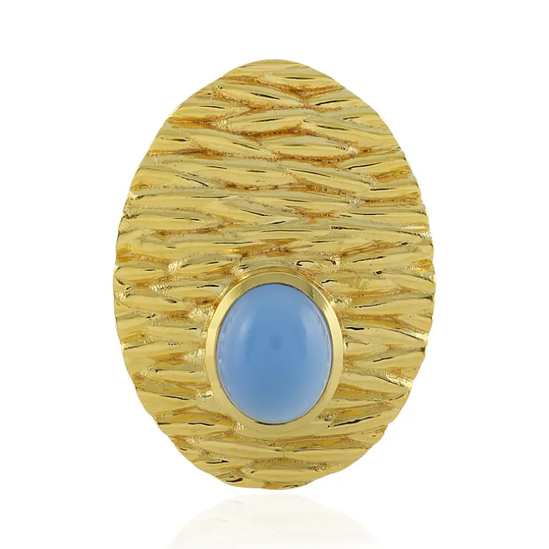 Indischer blauer Chalcedon Anhänger aus vergoldetem Silber, 3,15ct