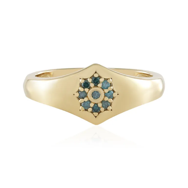 Goldplattierter Silberring mit blauem I2-Diamant