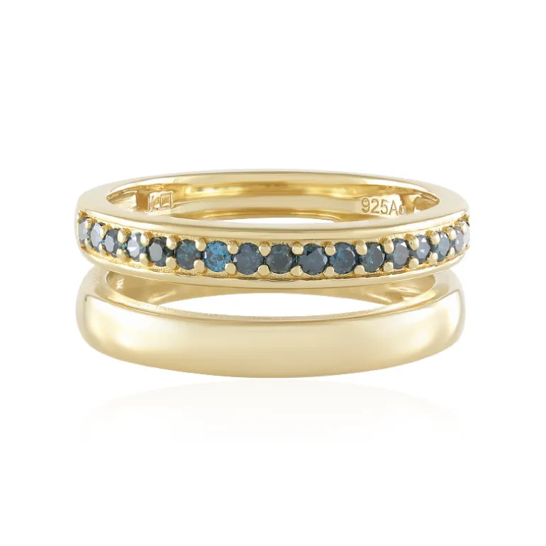 Ring mit blauen I2-Diamanten aus vergoldetem Silber