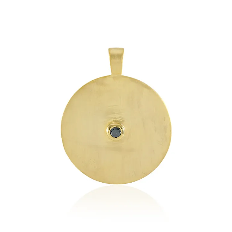 Unser schicker vergoldeter Anhänger hebt einen einzelnen blauen I3-Diamanten von 0,09 Karat auf elegante Weise von einem glänzenden Goldhintergrund ab. Das schlichte, minimalistische Design des Anhängers macht ihn zu einem vielseitigen Schmuckstück, das sich perfekt für den Alltag oder besondere Anlässe eignet. Mit einer Größe von 36×29 mm ist er ein dezentes Statement. Kombinieren Sie diesen modernen Anhänger mit einem eleganten schwarzen Kleid oder einem maßgeschneiderten Hemd, um seine atemberaubende Schlichtheit und das bezaubernde Funkeln des eingesetzten Diamanten zu betonen.