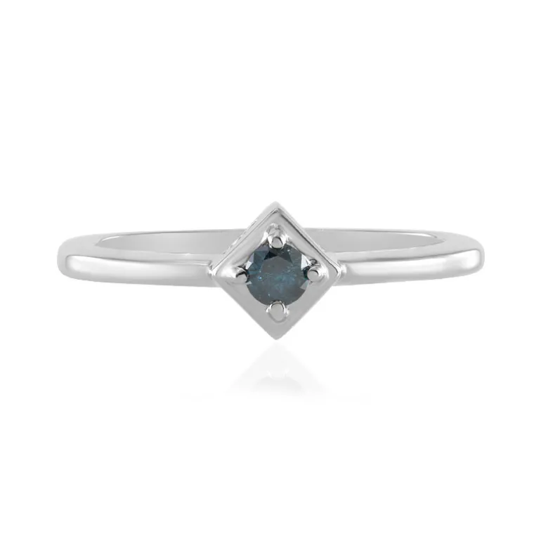 Entdecken Sie die Eleganz dieses atemberaubenden blauen Diamantrings mit einem runden Brillantschliff von 0,097 Karat. Gefertigt aus rhodiniertem 925er Sterlingsilber, verleiht dieses Schmuckstück jedem Outfit einen modernen Touch. Das schlichte Design eignet sich sowohl für legere als auch für formelle Anlässe und passt zu jedem Stil. Perfekt für alle, die raffinierten, aber unaufdringlichen Schmuck schätzen.
