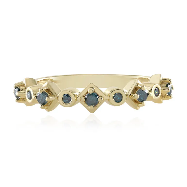 Entdecken Sie die Eleganz dieses raffinierten Rings aus 925er Sterlingsilber, der in eine glänzende Goldplattierung getaucht ist. Mit neun blauen I3-Diamanten von insgesamt 0,189 Karat funkelt dieses Schmuckstück mit moderner Anmut. Die größten Diamanten von jeweils 0,135 Karat sind im runden Brillantschliff geschliffen, um ihre Anziehungskraft zu verstärken, während die kleineren Steine von 0,054 Karat einen ergänzenden Schimmer bieten. Dieser Ring eignet sich perfekt, um der Alltagskleidung einen Hauch von Raffinesse zu verleihen oder die Abendgarderobe aufzuwerten. Er ist eine vielseitige Ergänzung für jede Schmucksammlung.