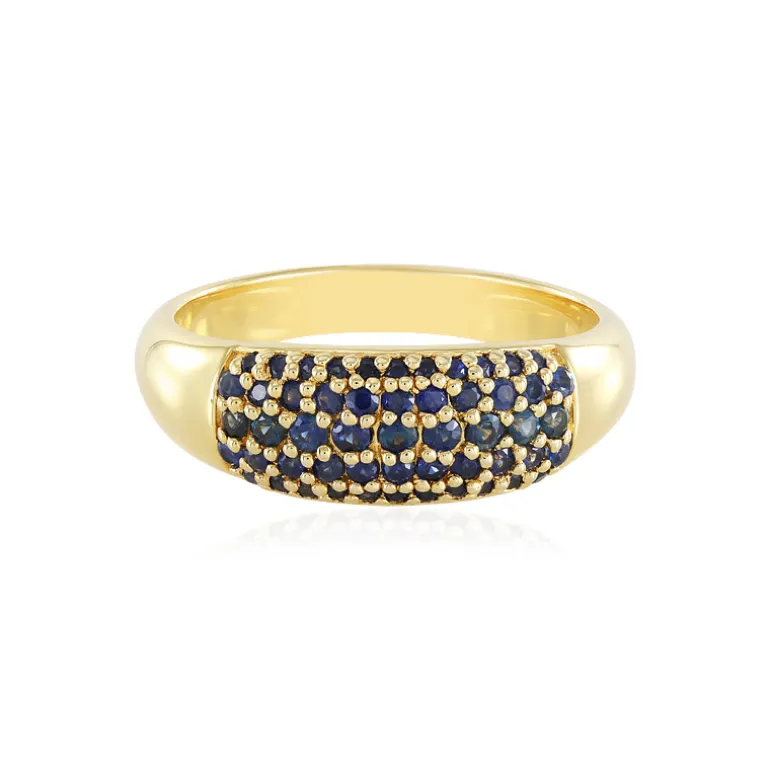 Entdecken Sie die zeitlose Anziehungskraft dieses Rings aus vergoldetem 925er Sterlingsilber, der elegant mit einer Reihe tiefblauer Saphire aus Madagaskar von insgesamt 0,783 Karat verziert ist. Jeder einzelne Saphir, präzise rund geschliffen und sorgfältig gefasst, erzeugt ein faszinierendes Lichtspiel. Die exquisite Goldplattierung verstärkt den auffallenden Kontrast und macht dieses Schmuckstück sowohl für legere als auch für formelle Anlässe geeignet. Tragen Sie diesen Ring, um jedem Outfit einen Hauch von Raffinesse zu verleihen, oder verschenken Sie ihn als luxuriöses Geschenk an einen besonderen Menschen.