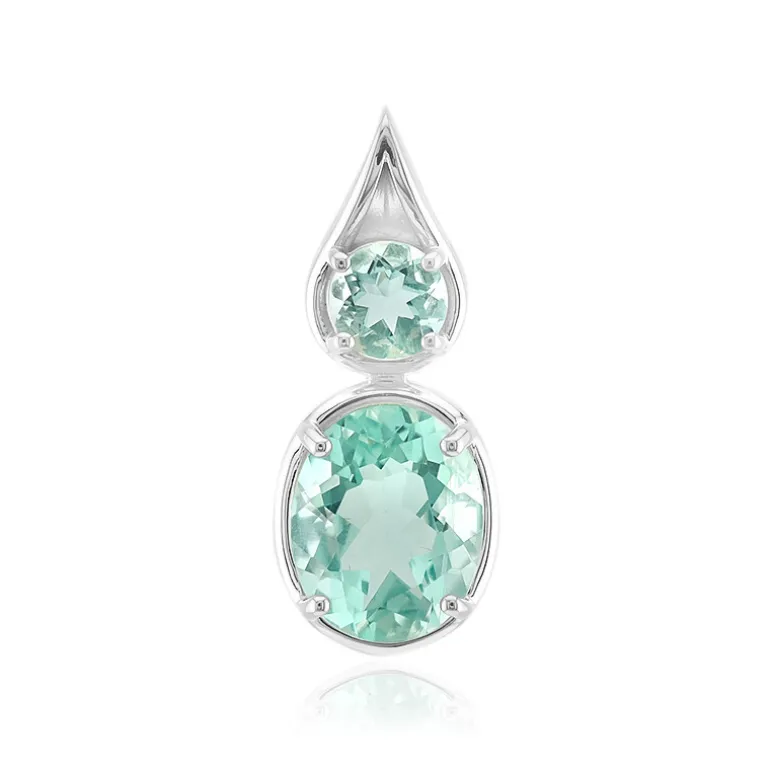 Entdecken Sie die bezaubernde Anziehungskraft dieses Braldu Fluorit Silberanhängers. Mit einer atemberaubenden Kombination aus oval und rund geschliffenen Fluorit-Edelsteinen aus Pakistan, präsentiert der Anhänger ein Gesamtkaratgewicht von 3,171 ct. Gefertigt aus 925er Sterlingsilber und in einem eleganten Stil entworfen, ist er perfekt, um jedem Outfit einen Hauch von Raffinesse zu verleihen. Er eignet sich sowohl für legere als auch für formelle Anlässe und ist eine reizvolle Ergänzung für jede Schmucksammlung.