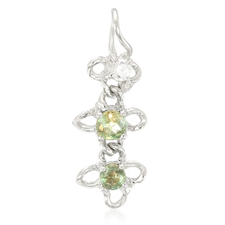 Entdecken Sie die Eleganz dieses brasilianischen Alexandrit-Anhängers mit zwei bezaubernden Edelsteinen im Rundschliff, die durch einen kambodschanischen Zirkon ergänzt werden. Das einzigartige, raffinierte Design aus platiniertem 925er Sterlingsilber eignet sich sowohl für formelle Anlässe als auch für Freizeitaktivitäten. Kombinieren Sie ihn mit Abendgarderobe oder verleihen Sie Ihrer Alltagskleidung einen Hauch von Eleganz.