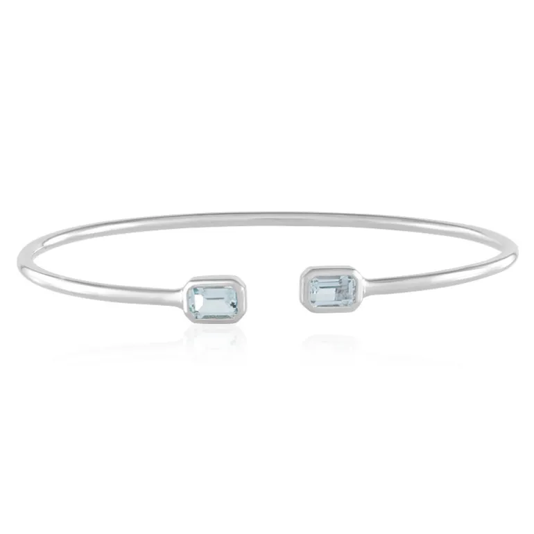 Entdecken Sie die Faszination dieses brasilianischen Aquamarin-Armreifs aus Silber mit zwei atemberaubenden Aquamarinen im Oktagon-Schliff von insgesamt 0,99 ct. Der elegante Armreif ist aus 925er Sterlingsilber mit Platin-Finish gefertigt und bietet einen raffinierten Touch. Er eignet sich sowohl für legere als auch für formelle Anlässe und passt sowohl zur Tages- als auch zur Abendgarderobe, was ihn zu einer vielseitigen Ergänzung Ihrer Schmucksammlung macht.