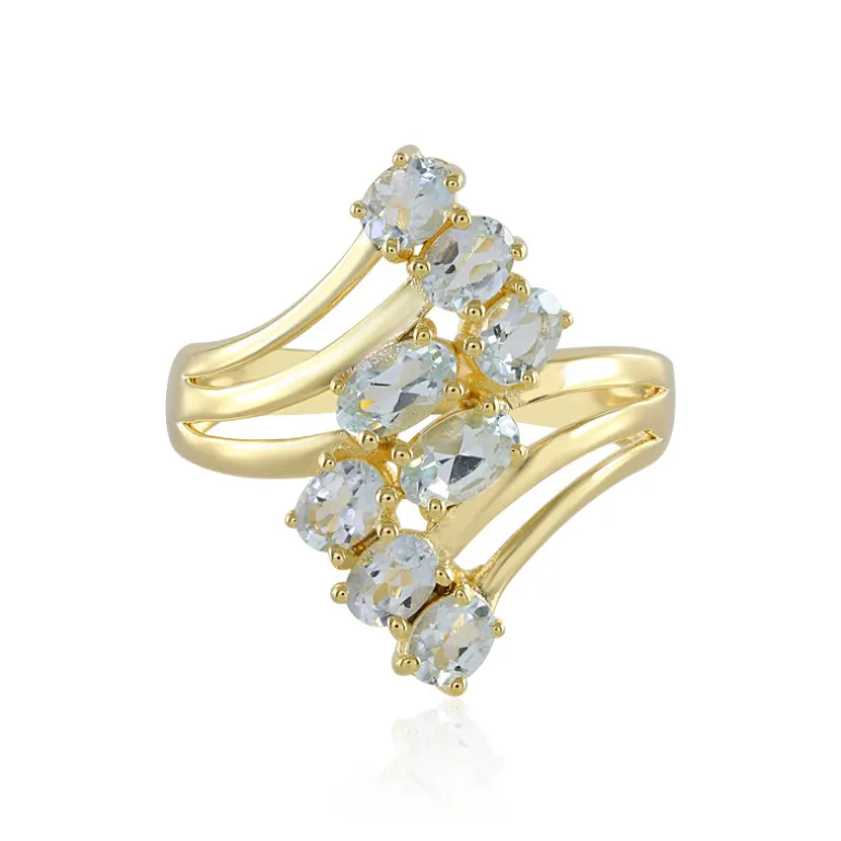 Entdecken Sie die Anziehungskraft dieses schicken brasilianischen Aquamarinrings mit einem Cluster aus oval geschliffenen Steinen von insgesamt 1,136 Karat. Das aus vergoldetem 925er Sterlingsilber gefertigte Schmuckstück vereint klassische Eleganz mit modernem Flair. Die aus Brasilien stammenden Aquamarine sind für ihre ruhigen blauen Farbtöne bekannt, die an die Ruhe der tropischen Meere erinnern. Mit einem stilvollen Design von 22×19 mm setzt dieser Ring ein Zeichen und ist gleichzeitig vielseitig genug, um sowohl tagsüber als auch abends getragen zu werden. Egal, ob Sie sich für einen besonderen Anlass herausputzen oder Ihren alltäglichen Stil unterstreichen, dieser Aquamarinring ist ein echter Blickfang und lädt zu Komplimenten ein.