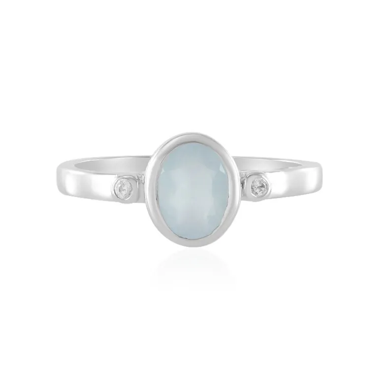 Dieser elegante Ring präsentiert einen bezaubernden brasilianischen Aquamarin im perfekten Ovalschliff, eingefasst in ein glänzendes Band aus platiniertem 925er Sterlingsilber. Flankiert von zwei funkelnden kambodschanischen Zirkonsteinen mit einem Gesamtgewicht von 0,652 ct. verleiht dieses Schmuckstück jedem Ensemble einen Hauch von Eleganz. Er eignet sich sowohl für den Alltag als auch für besondere Anlässe. Sein ätherischer blauer Farbton passt zu einer Vielzahl von Outfits und verspricht Eleganz bei jeder Geste.