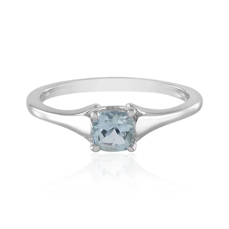 Brasilianischer 0,438ct Aquamarin-Kissen Silber Ring, plattiert