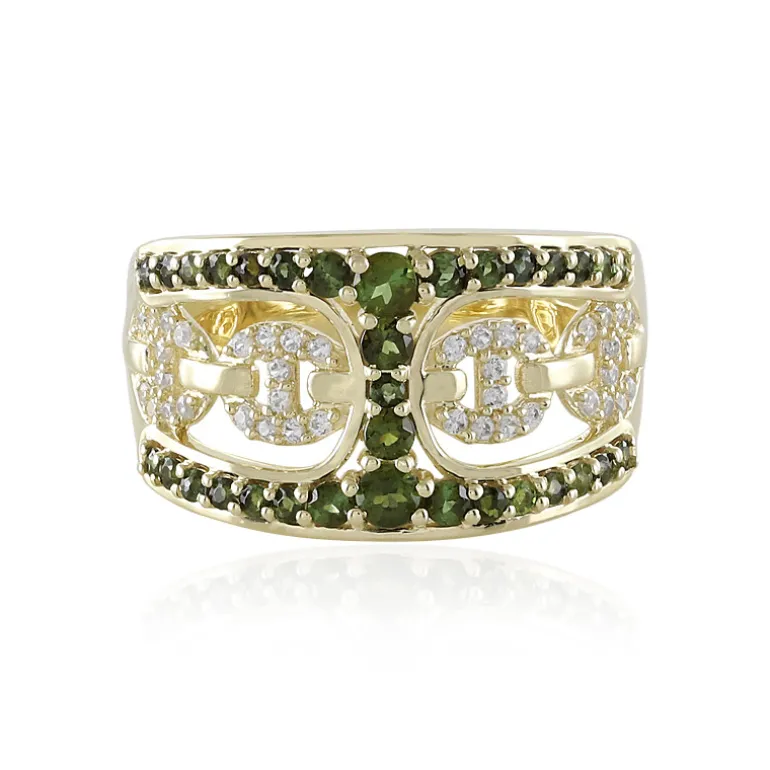 Schmücken Sie Ihren Finger mit der lebendigen Schönheit dieses Goldrings mit brasilianischem grünem Turmalin. Jeder der glitzernden Turmaline ist sorgfältig rund geschliffen, was ihre tiefgrünen Farbtöne hervorhebt. Der Ring aus 9-karätigem Gold wiegt ca. 3,73 g und ist mit einem Gesamtgewicht von 0,846 ct besetzt. Dieser Ring eignet sich sowohl für legere Eleganz als auch für formelle Anlässe und ist ein Muss für jede Kollektion, die einen Hauch von Majestät der Natur sucht.