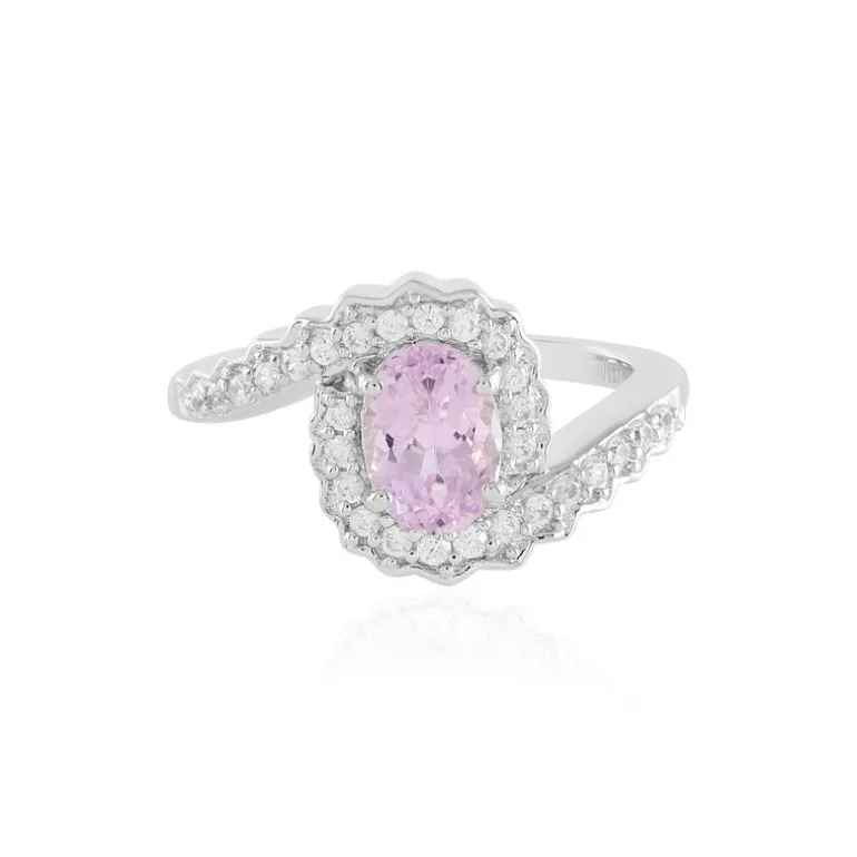 Entdecken Sie die sanfte Ausstrahlung dieses brasilianischen Kunzit-Rings, der mit einem zentralen Stein im Ovalschliff und funkelnden Zirkon-Akzenten aus Kambodscha geschmückt ist. Das hochwertige 925er Sterlingsilberband ist für zusätzlichen Glanz und Haltbarkeit plattiert und wiegt etwa 2,66 Gramm. Mit einem Gesamtkaratgewicht von 1,331 Karat glänzt dieser Ring mit seinem leuchtenden rosa Farbton, umgeben von einem Halo aus Zirkonen. Er ist perfekt, um Ihrem Alltagsoutfit einen Hauch von Raffinesse zu verleihen oder ein Outfit für einen besonderen Anlass zu verschönern.