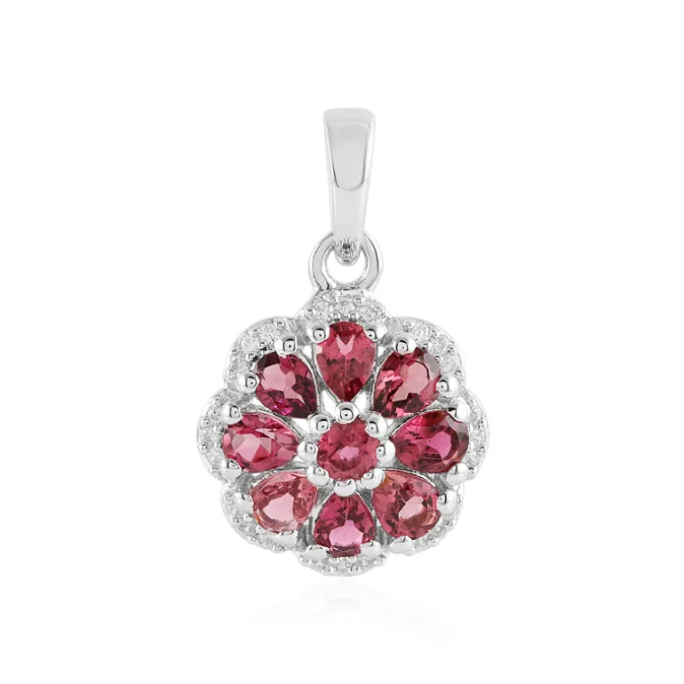 Ein Hauch von Romantik mit diesem floral inspirierten Anhänger aus Sterlingsilber, der eine bezaubernde Ansammlung von brasilianischen rosa Turmalinen von insgesamt 1,287 Karat präsentiert. Die Edelsteine im Tropfen- und Rundschliff werden zart von funkelnden Zirkonen aus Kambodscha umrahmt und bilden eine auffällige Blüte an Ihrem Dekolleté. Dieses vielseitige Schmuckstück lässt sich problemlos von der Tagesgarderobe bis zur eleganten Abendgarderobe tragen und ist somit eine unverzichtbare Ergänzung für jede Schmucksammlung.