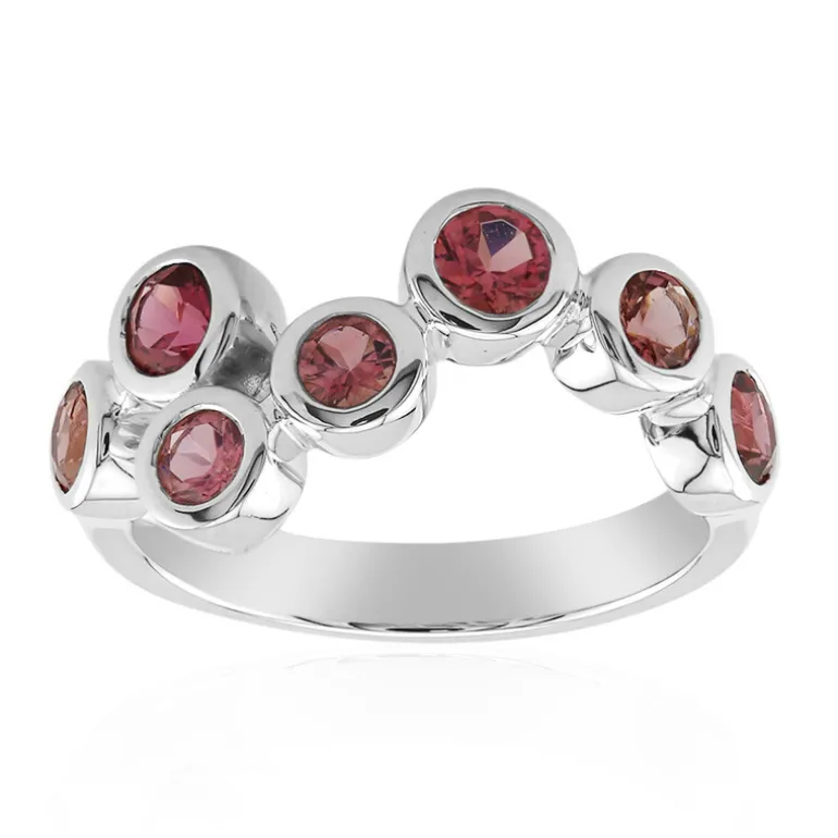 Entdecken Sie den zarten Charme dieses Silberrings mit einem brasilianischen rosa Turmalin, der ein Gesamtkaratgewicht von 0,782 ct aufweist. Das aus 925er Sterlingsilber gefertigte Schmuckstück ist mit rosa Turmalinen im Rundschliff besetzt, die Wärme und Raffinesse ausstrahlen. Die einzigartige Anordnung von sieben Turmalin-Edelsteinen sorgt für ein verspieltes und doch elegantes Design, das sich perfekt eignet, um einen Farbtupfer in Ihre Alltagskleidung zu bringen oder Ihre Outfits für besondere Anlässe aufzuwerten. Dieser Ring ist eine exquisite Ergänzung für jede Schmucksammlung und verbindet den lebendigen Schimmer der Turmaline mit dem zeitlosen Glanz von Sterlingsilber.