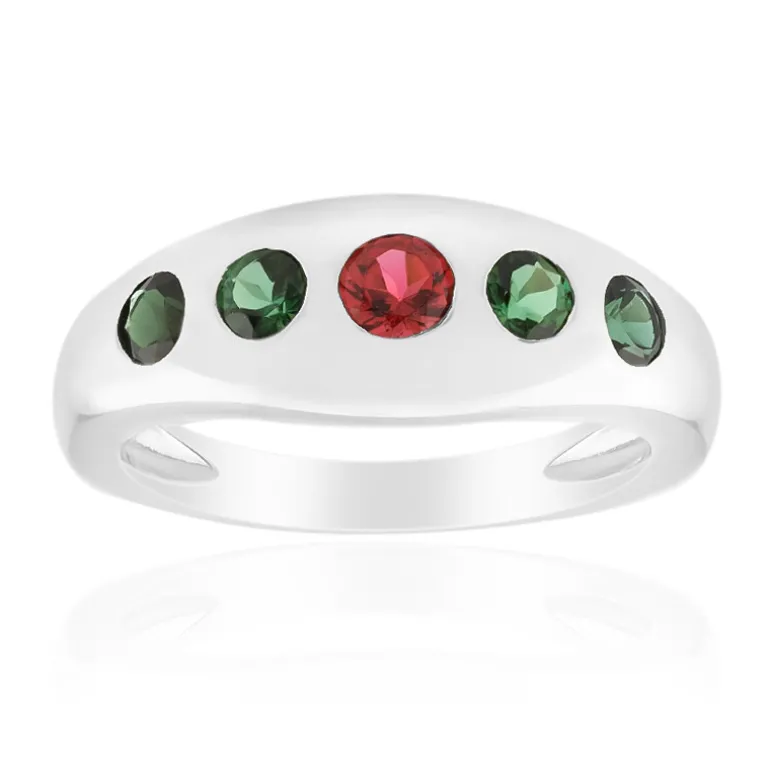 Dieser Ring aus Sterlingsilber besticht durch eine Kombination aus rosa, petrolfarbenen und grünen brasilianischen Turmalinen. Die rund geschliffenen Edelsteine sind in 925er Sterlingsilber gefasst und haben ein Gesamtgewicht von 0,519 Karat. Dieser farbenfrohe Ring ist perfekt für jeden Anlass und passt sowohl zu legeren als auch zu formellen Outfits. Er verleiht Ihrem Ensemble einen Hauch von Farbe und Raffinesse.