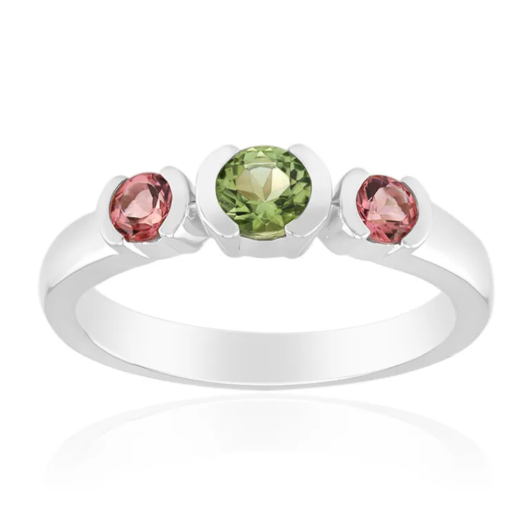 Grüner & Rosa Turmalin Sterling Silber Ring