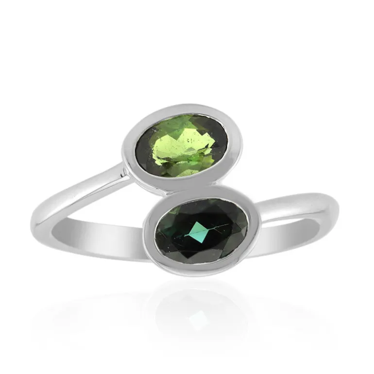 Entdecken Sie die bezaubernde Welt der Edelsteine mit diesem von Pallanova gefertigten Ring aus Sterlingsilber, der zwei brasilianische Turmaline im Ovalschliff mit einem Gesamtgewicht von 0,766 Karat enthält. Der harmonische Kontrast zwischen bläulich-grünen und leuchtend grünen Farbtönen bietet ein einzigartiges Farbspiel, während das 925er Sterlingsilberband einen Hauch von Raffinesse verleiht. Dieser charmante Ring ist ideal, um sowohl am Tag als auch am Abend einen Farbtupfer zu setzen, und wird bei jeder gesellschaftlichen Veranstaltung für Gesprächsstoff sorgen.
