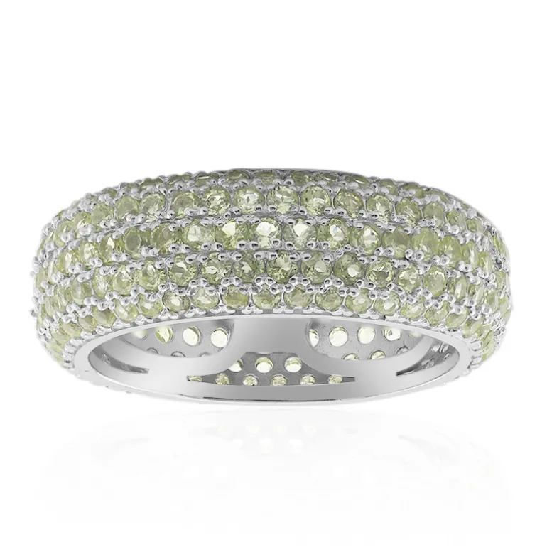 Entdecken Sie die leuchtende Anziehungskraft unseres Myanmar Peridot Pavé Rings. Dieses exquisite Schmuckstück ist ein Meisterwerk der Handwerkskunst mit 220 burmesischen Peridots von insgesamt 2,93 Karat, gefasst in hochglanzpoliertem 925er Sterlingsilber mit einem Ringgewicht von ca. 3,45 Gramm. Dieser Ring ist perfekt geeignet, um jedem Ensemble einen grünen Schimmer zu verleihen und ist ein elegantes Statement für den Tag oder den Abend. Kombinieren Sie ihn mit Pastelltönen oder klassischem Weiß, um die leuchtenden Grüntöne richtig zur Geltung zu bringen.
