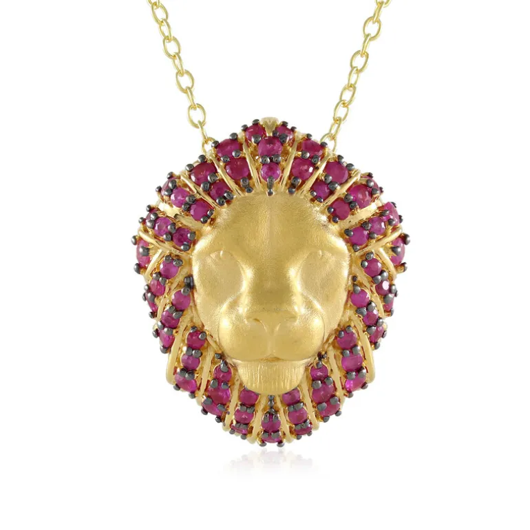 Setzen Sie ein kühnes Statement mit diesem auffälligen Anhänger mit Löwenmotiv und exquisiten birmanischen Rubinen aus Myanmar, gefasst in glänzendes 925er Sterlingsilber. Das komplizierte Design zeigt 58 lebhafte Rubine mit einem Gesamtkaratgewicht von 1,691 und macht ihn zu einem königlichen und auffälligen Schmuckstück. Dieser Anhänger eignet sich sowohl für legere als auch für formelle Anlässe und verleiht jedem Outfit einen Hauch von Eleganz und Macht. Ideal für besondere Anlässe oder als einzigartiges Accessoire für jeden Tag ist er ein Muss für alle Schmuckliebhaber, die einen außergewöhnlichen Stil suchen.