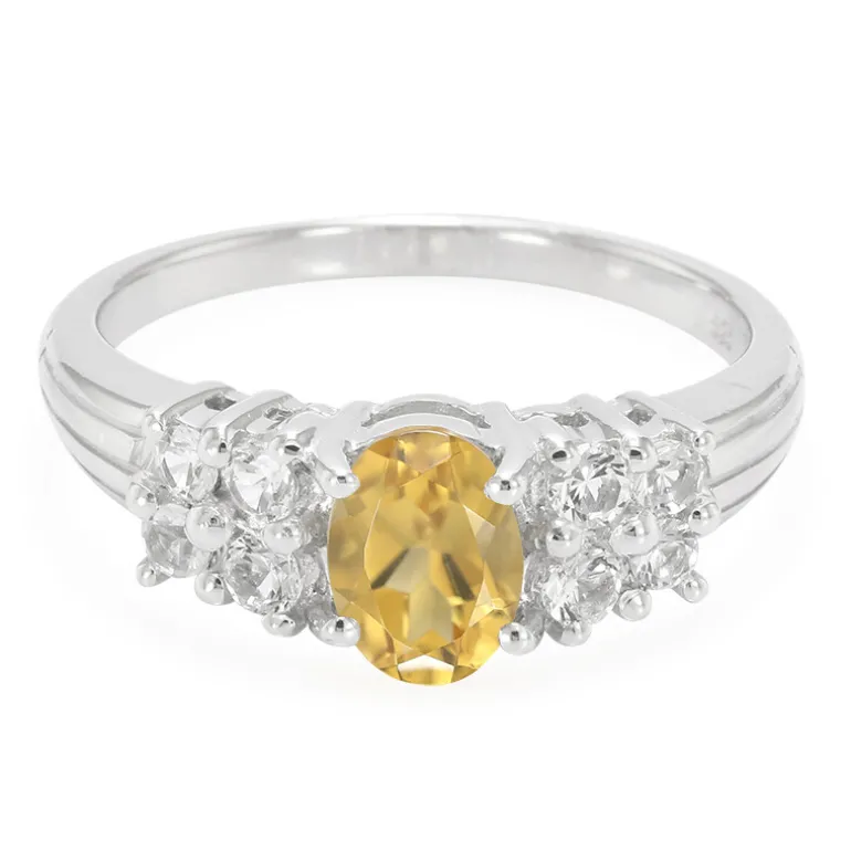 Entdecken Sie die Anziehungskraft dieses schimmernden Rings aus Sterlingsilber mit einem majestätischen Champagnerquarz im Ovalschliff von 0,65 Karat, umgeben von einem Kranz aus strahlend weißen Topasen von insgesamt 0,375 Karat. Der Kontrast zwischen dem sanften Goldton des Quarzes und der funkelnden Klarheit der Topase schafft eine atemberaubende visuelle Sinfonie, die Luxus und Anmut ausstrahlt. Dieser Ring eignet sich perfekt, um Ihrer Alltagskleidung einen Hauch von Eleganz zu verleihen oder ein Abendkleid zu ergänzen. Er verspricht, eine vielseitige und geschätzte Ergänzung Ihrer Schmucksammlung zu sein.