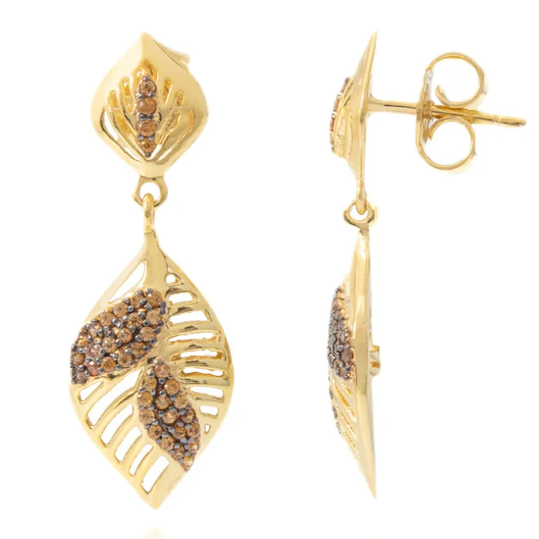 Champagner Zirkon Blatt vergoldete Ohrringe
