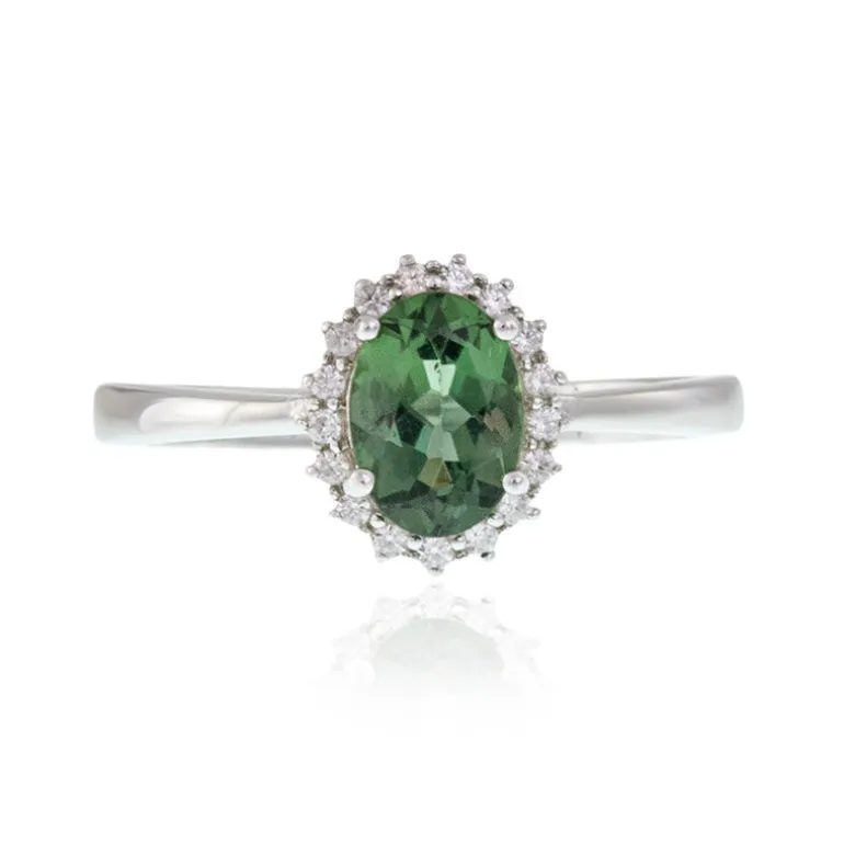 Entdecken Sie die Faszination unseres Chrom-Apatit-Rings aus Madagaskar, einem seltenen Edelstein, der fein in eine ovale Form geschliffen und in poliertes 925er Sterlingsilber eingefasst ist. Der 0,646ct Chrom-Apatit-Mittelstein wird von 17 funkelnden Zirkonen aus Kambodscha ergänzt, die dem Design einen Hauch von Brillanz verleihen. Er eignet sich perfekt, um jedem Outfit einen Hauch von Raffinesse zu verleihen, und passt sowohl zu Berufskleidung als auch zu eleganten Abendgarderobe. Peppen Sie Ihre Schmucksammlung mit diesem exquisiten Stück auf.