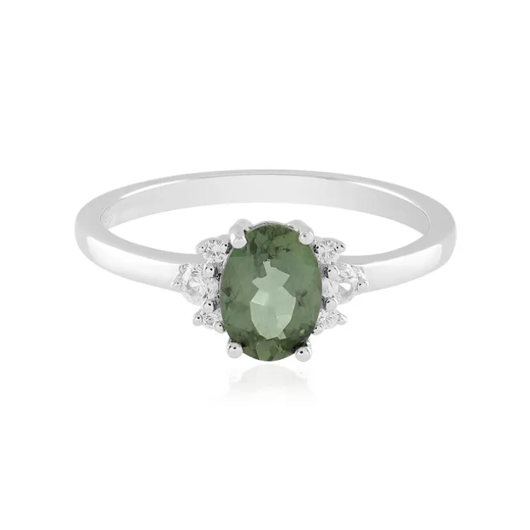 Erleben Sie die Anziehungskraft Brasiliens mit diesem fesselnden Ring aus Chrom-Apatit im Ovalschliff, umrahmt von funkelnden Zirkonen aus Kambodscha mit einem Gesamtgewicht von 0,845ct. Der üppige Grünton des zentralen Steins wird durch das Funkeln der Zirkon-Seitensteine ergänzt und ist elegant auf 925er Sterlingsilber montiert. Dieser Ring ist ideal, um jedem Outfit einen Hauch von Raffinesse zu verleihen und eignet sich sowohl für Freizeitkleidung als auch für besondere Anlässe. Schmücken Sie Ihre Hand mit diesem Kunstwerk der Natur, das eine außergewöhnliche Mischung aus Brillanz und Charme in Ihre Schmucksammlung bringt.