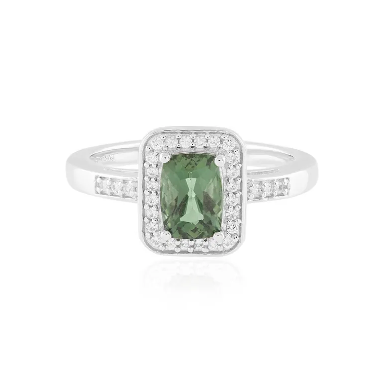 Entdecken Sie die Faszination dieses brasilianischen Chrom-Apatit-Rings mit einem schillernden Edelstein von 0,869 Karat im Antik-Schliff, eingebettet in eine glänzende Fassung aus 925 Sterling Silber. Der Ring wird durch einen Halo aus 30 schimmernden kambodschanischen Zirkonen von insgesamt 0,189 ct. betont, die den leuchtend grünen Farbton des zentralen Steins elegant ergänzen. Mit einer Größe von 24 x 21 mm ist dieser exquisite Ring perfekt geeignet, um sowohl Tages- als auch Abendgarderobe einen Hauch von Raffinesse zu verleihen.