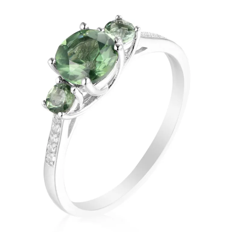 Entdecken Sie den pulsierenden Charme Madagaskars mit diesem Ring aus Sterlingsilber, der ein Trio von Chrom-Apatit-Edelsteinen von insgesamt 1,033 Karat zierlich aufnimmt. Der zentrale Stein besticht durch seinen satten grünen Farbton und seinen runden Schliff, während kleinere Chrom-Apatite und kambodschanische Zirkone für ein zartes Funkeln sorgen. Mit einem Gewicht von 1,92 Gramm und einer Größe von 23×20 mm strahlt dieser Ring Eleganz aus. Er eignet sich sowohl für den Alltag als auch für besondere Anlässe und ist eine beneidenswerte Ergänzung für jede Sammlung. Kombinieren Sie ihn mit pastellfarbenen oder neutralen Tönen für einen subtilen und doch raffinierten Look.