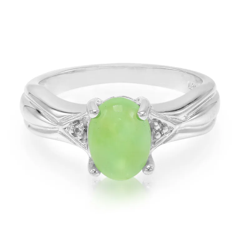 Entdecken Sie die Faszination dieses atemberaubenden Chrysopras-Rings mit einem leuchtenden 1,02-Karat-Cabochon aus Australien. Er ist aus elegantem 925er Sterlingsilber gefertigt und wird von zwei funkelnden weißen Topas-Steinen aus Brasilien akzentuiert. Dieser Ring eignet sich sowohl für legere als auch für formelle Anlässe und verleiht jedem Ensemble einen Hauch von Eleganz. Kombinieren Sie ihn mit Ihrem Lieblingskleid oder einer schicken Bluse für einen eleganten Look.