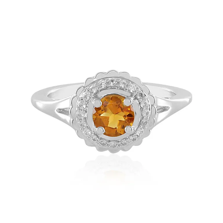 Dieser bezaubernde Ring zeigt einen sonnenverwöhnten brasilianischen Citrin in der Mitte, der rund geschliffen ist, um seine warmen Goldtöne zu enthüllen. Umgeben von 20 funkelnden kambodschanischen Zirkonsteinen mit insgesamt 0,126 ct. strahlt dieser Ring aus 925er Sterlingsilber zeitlose Raffinesse aus. Mit einem Gewicht von ca. 2,31 g hat der Ring ein Gesamtgewicht von 0,495 ct. Kombinieren Sie dieses Schmuckstück sowohl mit Ihrer Freizeit- als auch mit Ihrer Abendgarderobe und verleihen Sie jedem Moment einen Hauch von Eleganz.