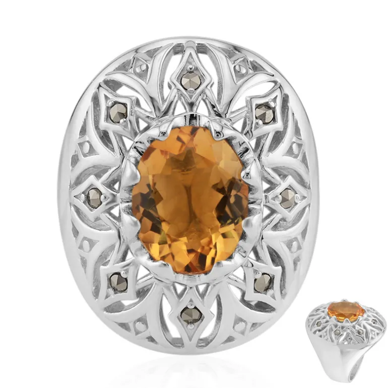 Dieser exquisite Ring zeigt einen atemberaubenden 1,97-karätigen Citrin aus Madagaskar, der wunderschön in 925er Sterlingsilber gefasst ist. Akzentuiert mit 8 österreichischen Markasiten, schafft das komplizierte Design einen fesselnden Vintage-Look. Dieser Ring ist perfekt, um jedem Outfit einen Hauch von Eleganz zu verleihen und passt sowohl zu legerer als auch zu formeller Kleidung.