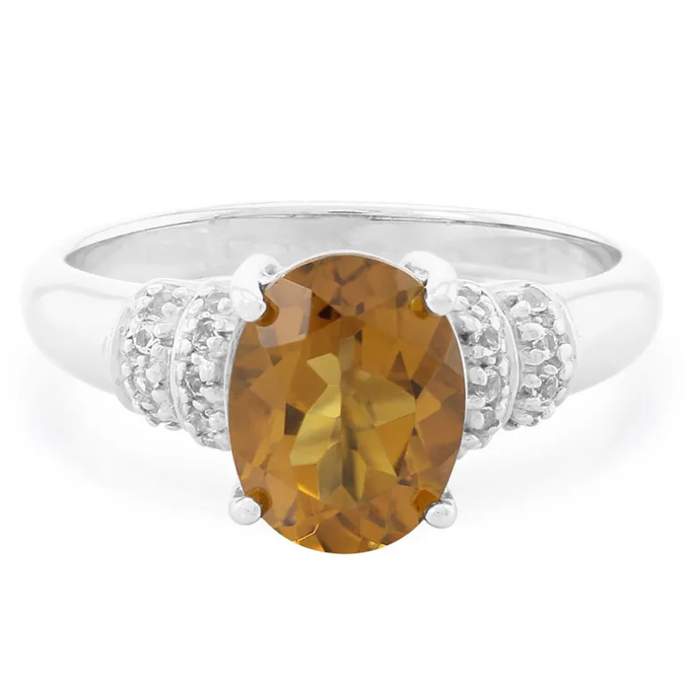 Brasilianischer Cognac-Quarz & Weißer Topas Silberring, 1,68ct