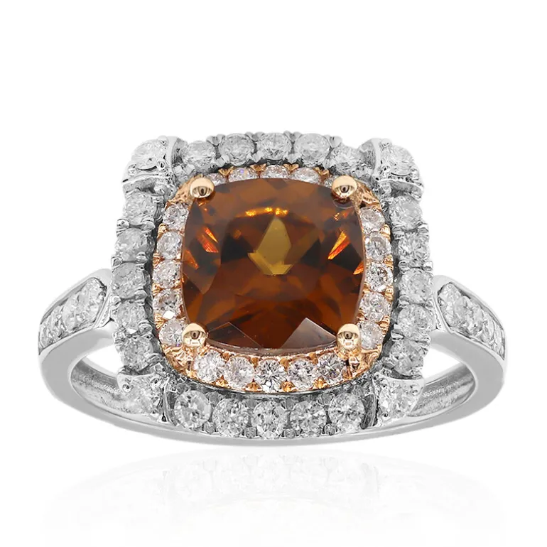 Cognac-Zirkon-Diamantring mit Kissenschliff, Roségold