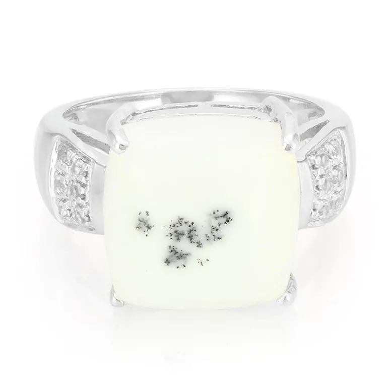 Entdecken Sie die natürliche Kunstfertigkeit mit diesem atemberaubenden Silberring aus brasilianischem Dendritenachat. Mit einem 7,58 ct. antiken Kissen-Cabochon, der perfekt von 12 funkelnden brasilianischen weißen Topasen von insgesamt 0,143 ct. eingerahmt wird, fängt dieses Stück Eleganz in 925er Sterlingsilber ein. Mit einem Gesamtgewicht von 7,723 ct und einer Größe von 28 x 22 mm ist der Ring an jedem Finger ein Blickfang. Dieser Ring ist ideal, um Ihrer Geschäftskleidung Raffinesse zu verleihen oder Ihre Abendgarderobe zu verschönern. Er wird mit Sicherheit ein geschätzter Bestandteil Ihrer Sammlung werden.