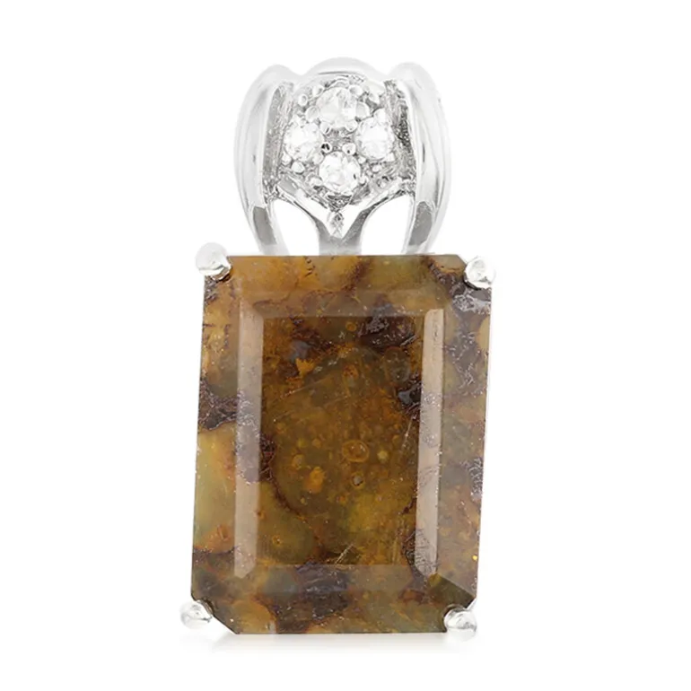 Entdecken Sie mit dem Dinosaurier-Quarz-Anhänger aus Sterlingsilber ein fesselndes Stück. Dieser Anhänger mit einem Quarz im Oktagon-Schliff von 10,77 Karat aus den USA wird durch vier weiße Topase im Brillantschliff aus Brasilien ergänzt. Die Fassung aus glänzendem 925er Sterlingsilber verleiht ihm einen modernen Touch. Der Anhänger eignet sich perfekt für jedes Outfit und passt mit seinem erdigen Charme zu legeren und formellen Anlässen.