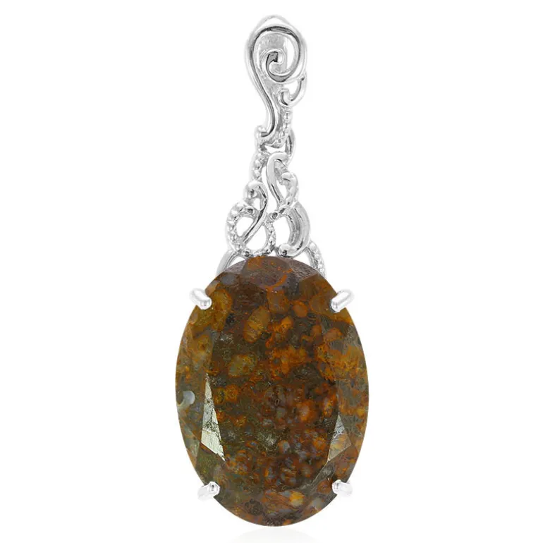 Wir präsentieren einen einzigartigen Dinosaurierquarz-Anhänger aus 925er Sterlingsilber. Dieses bezaubernde Schmuckstück mit einem 16,75 Karat schweren Edelstein im Ovalschliff aus den USA besticht durch seine erdigen Farbtöne und faszinierenden Muster, die es zu einem echten Hingucker machen. Ideal für Freizeitkleidung oder besondere Anlässe. Kombinieren Sie ihn mit neutralen Outfits, um seine natürliche Schönheit zur Geltung zu bringen. Verkörpern Sie Geschichte und Stil mit diesem exquisiten Accessoire.