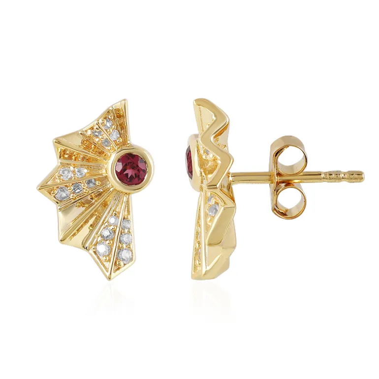 Entdecken Sie die Faszination Tansanias mit diesen bezaubernden Ohrringen aus vergoldetem Sterlingsilber, die elegant mit roten Spinellen von 0,188 Karat verziert sind. Die 925er Sterling-Fassung mit einem Gewicht von ca. 2,92 g ist wunderschön mit kambodschanischen Zirkon-Akzenten von insgesamt 0,343 ct verziert, die einen Hauch von Glamour verleihen. Die Spinelle im Rundschliff, hervorgehoben durch eine Konstellation von Zirkonen, sorgen für einen subtilen Schimmer, der sowohl im Alltag als auch bei besonderen Anlässen getragen werden kann. Diese Ohrringe sind ideal, um einem einfarbigen Outfit einen farbigen Akzent zu verleihen oder ein farbenfrohes Abendkleid zu ergänzen. Sie sind vielseitig einsetzbar.
