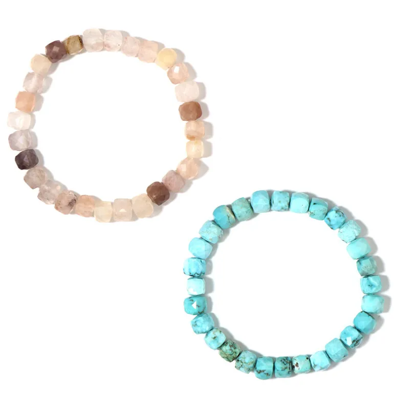 Entdecken Sie Eleganz mit diesem Set aus facettierten Perlenarmbändern mit brasilianischem Quarz und leuchtend blauem Howlite aus den USA. Mit insgesamt 126,472 Karat sind diese Armbänder eine vielseitige und stilvolle Ergänzung für jedes Outfit. Sie eignen sich perfekt für legere Ausflüge oder als Statement-Stück für Abendveranstaltungen und ergänzen mühelos sowohl moderne als auch klassische Stile.
