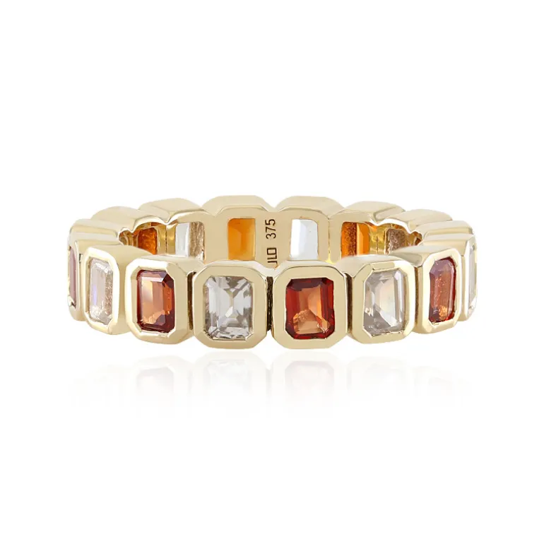 Dieser Goldring mit Edelsteinen ist ein zeitloses Schmuckstück, das Eleganz und Stil vereint. Er ist aus 9-karätigem Gold gefertigt und verfügt über eine leuchtende Anordnung von mehrfarbigen Edelsteinen, die ein fesselndes Schauspiel von Farbe und Brillanz schaffen. Dieser Ring eignet sich sowohl für den Alltag als auch für besondere Anlässe und verleiht jedem Outfit einen Hauch von Raffinesse. Kombinieren Sie ihn mit formeller Kleidung für eine gehobene Veranstaltung oder tragen Sie ihn zu legeren Outfits für einen eleganten, polierten Look.