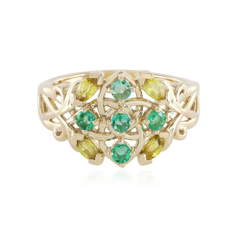 Thai Gelber Saphir & Sambischer Smaragd 9K Gold Ring