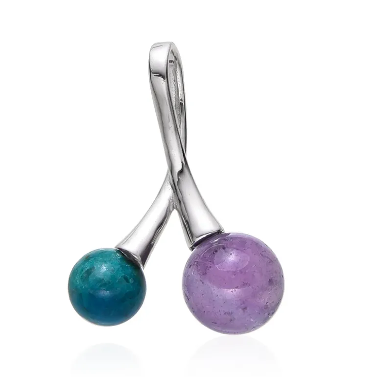 Entdecken Sie die Anziehungskraft kontrastreicher Farbtöne mit diesem Anhänger aus Sterlingsilber, der einen 4,5-karätigen brasilianischen Amethyst und einen 2-karätigen peruanischen Chrysokoll enthält. Jede runde Perle versprüht ihren eigenen Charme, der Amethyst mit seinem tiefen Violett und der Chrysokoll mit seinen lebhaften blau-grünen Tönen. Dieses aus hochwertigem 925er Sterlingsilber gefertigte Schmuckstück mit zwei Edelsteinen strahlt Eleganz aus und verleiht jedem Ensemble einen Hauch von Farbe. Dieser Anhänger eignet sich sowohl für einen legeren Brunch als auch für einen eleganten Abend und ist eine vielseitige Ergänzung Ihrer Schmucksammlung.