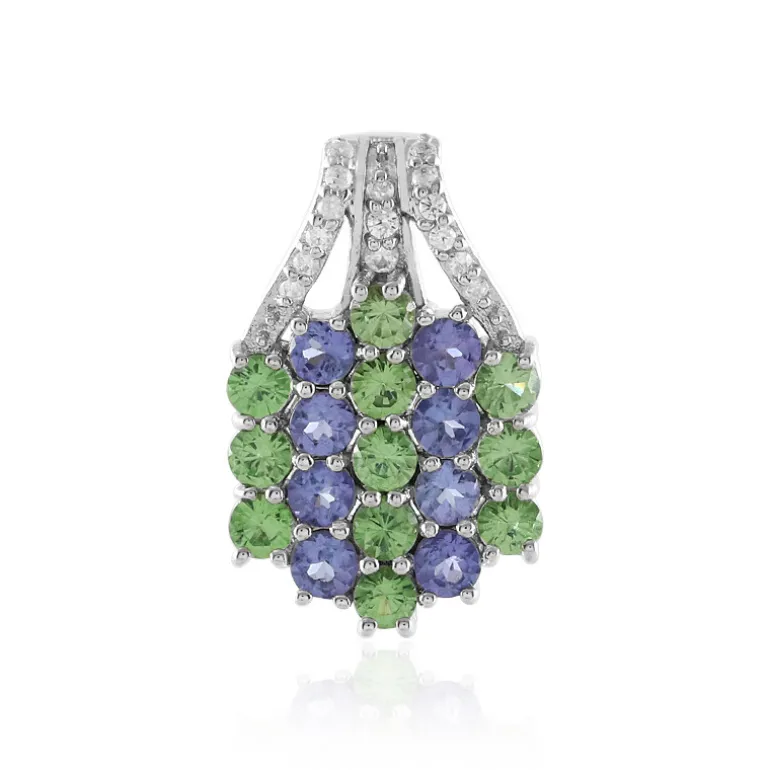 Entdecken Sie die Faszination des tansanischen Tansanits und des kenianischen Tsavorits mit diesem atemberaubenden Anhänger. Eine Kaskade von Tansaniten im Rundschliff und lebhaften Tsavoriten von insgesamt 1,833 Karat ist wunderschön in platiniertes 925er Sterlingsilber gefasst und bietet einen brillanten Farbkontrast und Glanz. Mit seiner kompakten Größe von 19×12 mm verleiht dieses Schmuckstück sowohl der Tages- als auch der Abendgarderobe einen Hauch von Eleganz. Perfekt für alle, die ihrem Outfit einen Hauch von Farbe und Eleganz verleihen möchten.