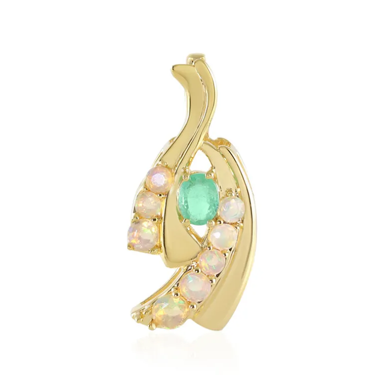 Russischer Smaragd & Äthiopischer Opal Goldplattierter Anhänger, 0,702ct