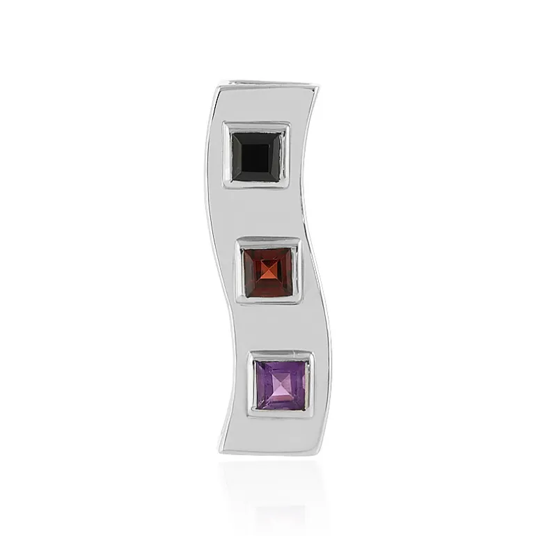 Dieser schillernde Anhänger aus der MONOSONO COLLECTION besteht aus einem Trio von Edelsteinen im Quadratschliff: Schwarzer Spinell, Granat und Amethyst, die alle verantwortungsvoll aus Madagaskar, Indien bzw. Brasilien gewonnen werden. Dieser 30 x 9 mm große Anhänger aus poliertem 925er Sterlingsilber mit einem Gesamtgewicht von 1,287 ct ist ein auffälliges Statement. Perfekt, um sowohl der Tages- als auch der Abendgarderobe einen Hauch von Farbe und Raffinesse zu verleihen.