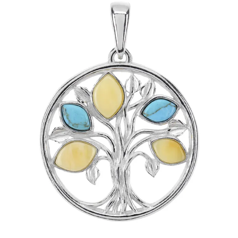 Schicker baltischer Bernstein & Türkis Baum-Anhänger, 925 Silber