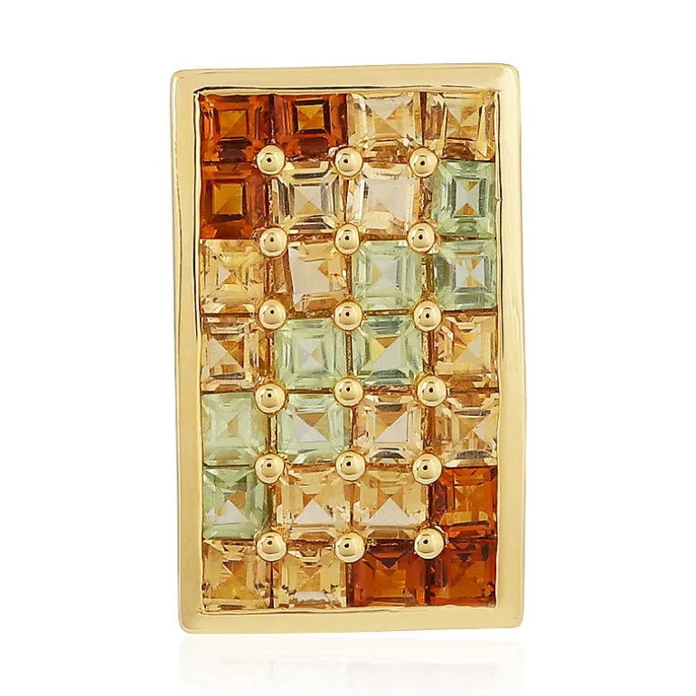 Dieser Anhänger aus vergoldetem Sterlingsilber besticht durch sein symmetrisches Mosaik aus reichem Brandy-Citrin und leuchtendem Peridot mit insgesamt 1,33 Karat. Die für die MONOSONO COLLECTION entworfenen Edelsteine im Quadratschliff aus Brasilien und China sind so angeordnet, dass sie das Licht in jedem Winkel einfangen. Der aus 925er Silber mit einer warmen Goldauflage gefertigte Anhänger ist ein vielseitiges Schmuckstück, das sowohl einem lässigen Tageslook als auch einer Abendgarderobe einen Hauch von Eleganz verleiht. Er ist ein Schatz für alle, die die lebendige Schönheit von Natursteinen zu schätzen wissen.