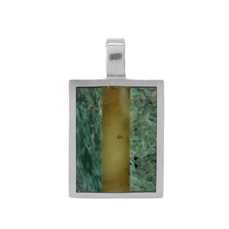 Baltischer Bernstein & Fuchsit Mosaik Silber-Anhänger